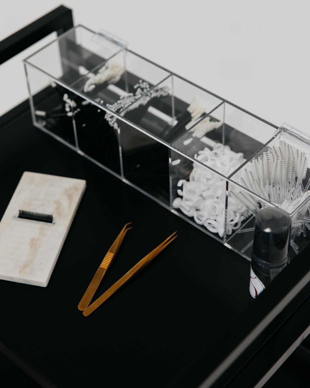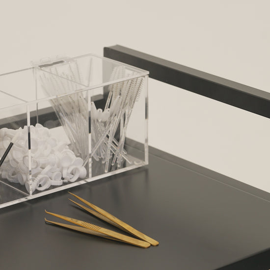 With its sleek, transparent design, our organizer keeps your necessities neatly arranged, readily accessible, and easy to see. Our organizer not only showcases your collection of lash essentials but also provides quick and easy access to everything you need. No more cluttered workstations—this organizer streamlines your workflow, allowing you to focus on delivering an exceptional service.